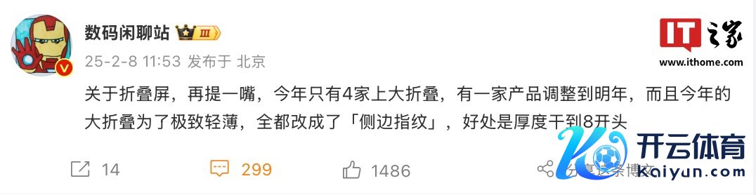 IT之家 2 月 8 日音讯,博主 @数码谈天站 今天炫耀,2025 年业界只须 4 家厂商将发布大折叠手机,另有一家厂商将相应居品退换到来岁。